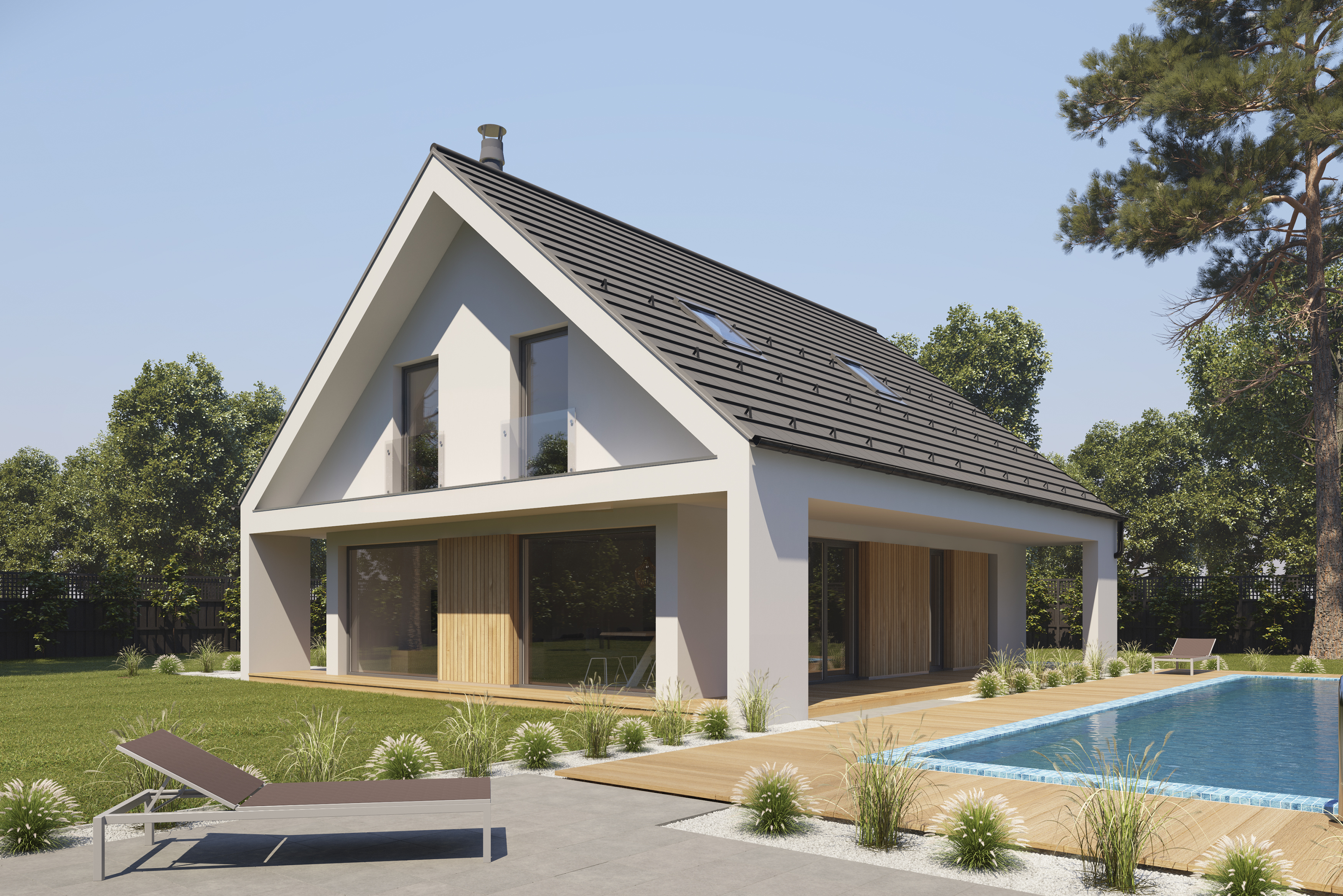 Standing out are also extensive eaves on the longitudinal sides of the house, which provide shade during hot summer days and additionally protect the house from extreme weather conditions in the winter. The characteristic modern appearance and refined architectural design of the house that spans across 148 m2 have already delighted many of our customers.