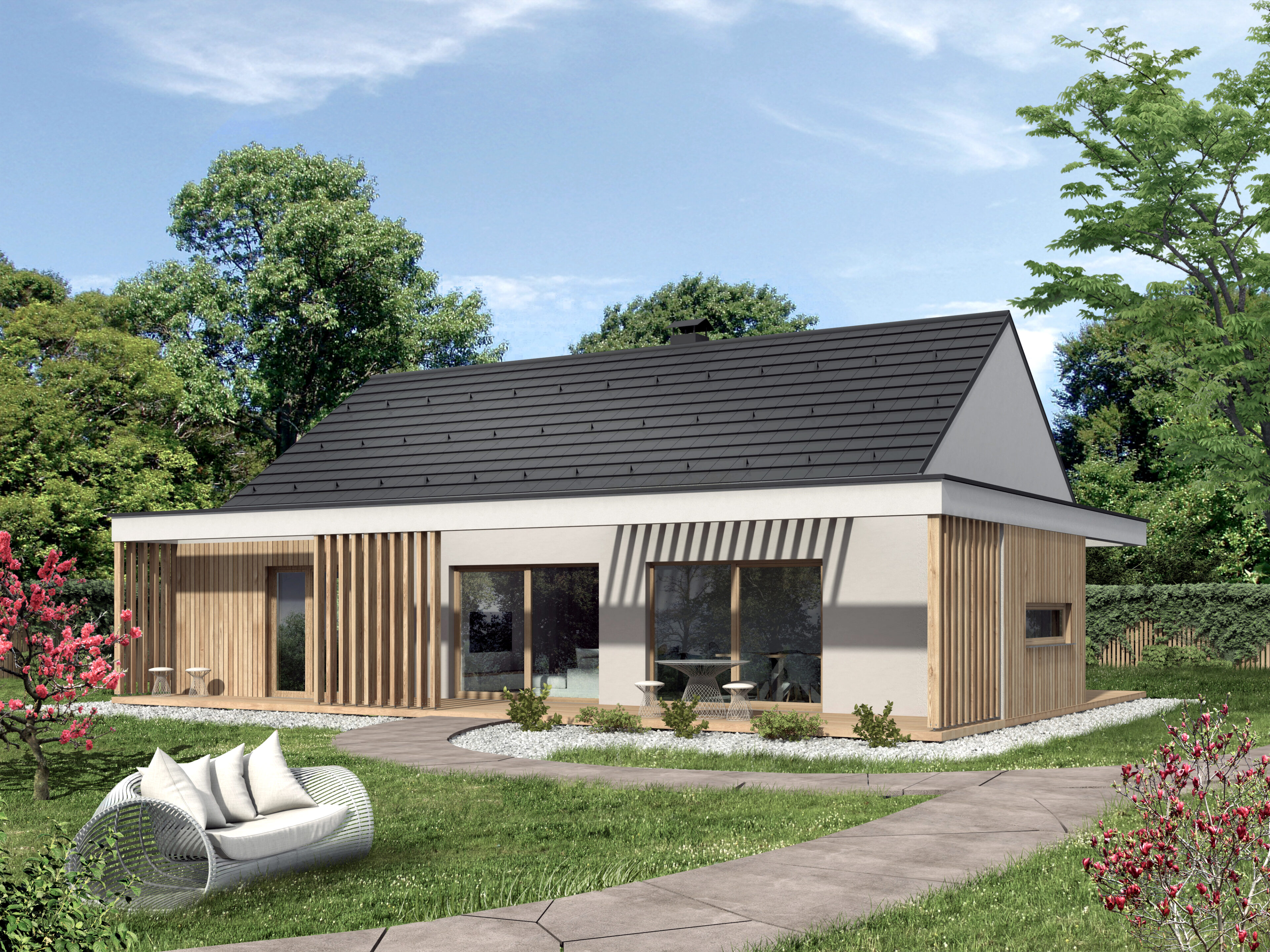 Pritlične montažne hiše so lepe, praktične in nudijo odlično funkcionalnost. Zasnovali smo jih tako, da na manjši površini zagotavljajo vse potrebno za udobno bivanje. Načrt hiše dovoljuje kar nekaj sprememb in se tako prilagodi vaši parceli ter življenjskemu slogu.