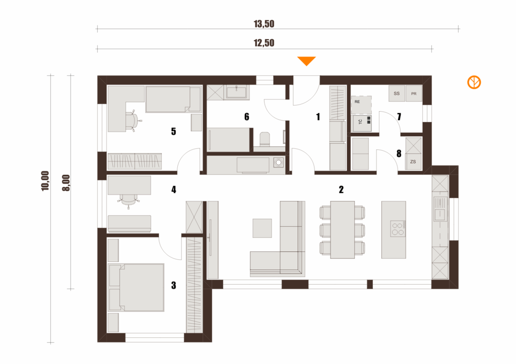 Pritlične montažne hiše so lepe, praktične in nudijo odlično funkcionalnost. Zasnovali smo jih tako, da na manjši površini zagotavljajo vse potrebno za udobno bivanje. Načrt hiše dovoljuje kar nekaj sprememb in se tako prilagodi vaši parceli ter življenjskemu slogu.
