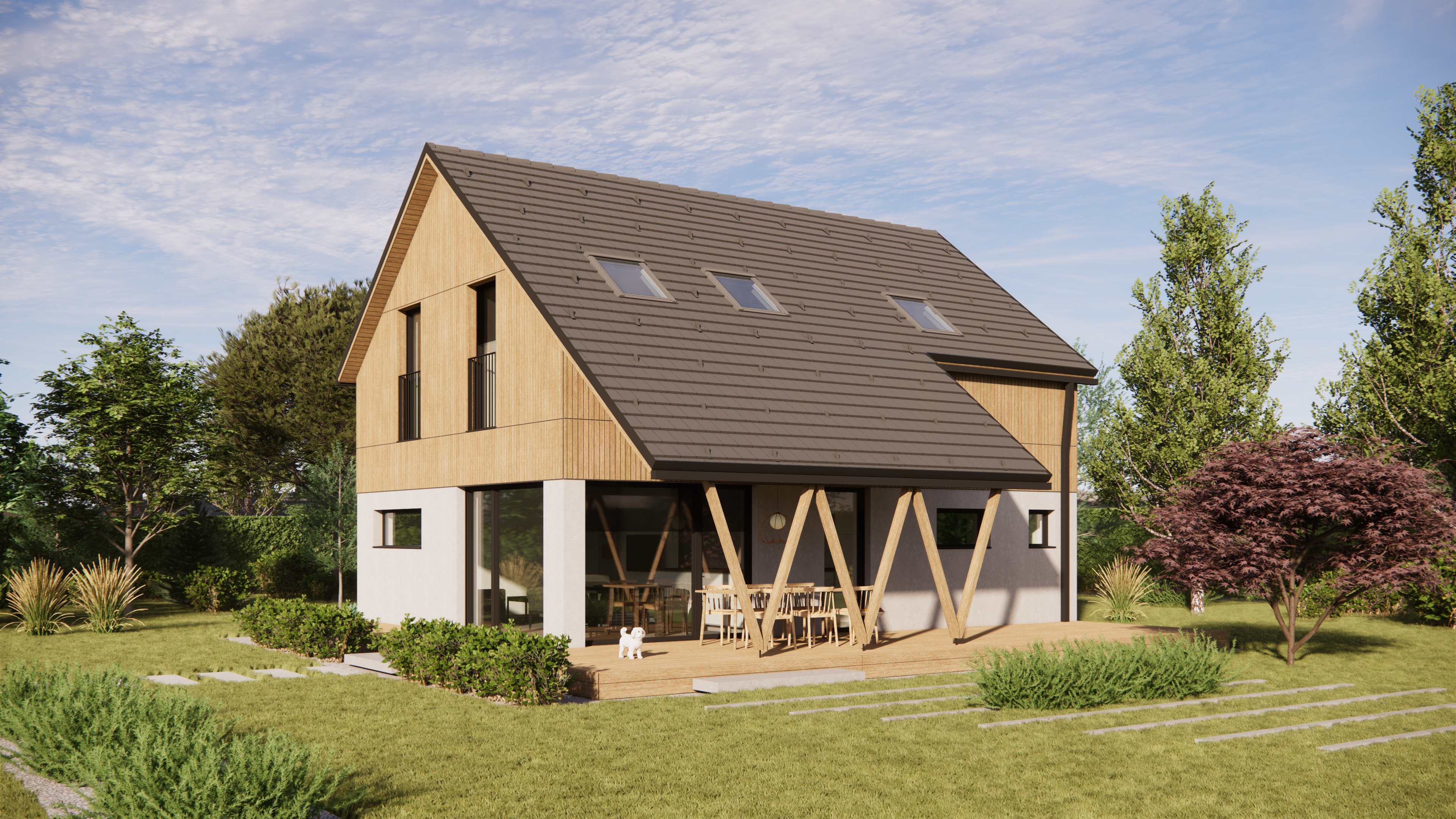 Lesena montažna hiša S 120 predstavlja kompaktno rešitev za vse, ki iščejo atribute prostornih hiš na samo 120 m2 bivalne površine. Z moderno zasnovo pritličja in optimalno razporejenimi prostori v mansardi, hiša ustvari ambient domačnosti, svetlosti in topline.