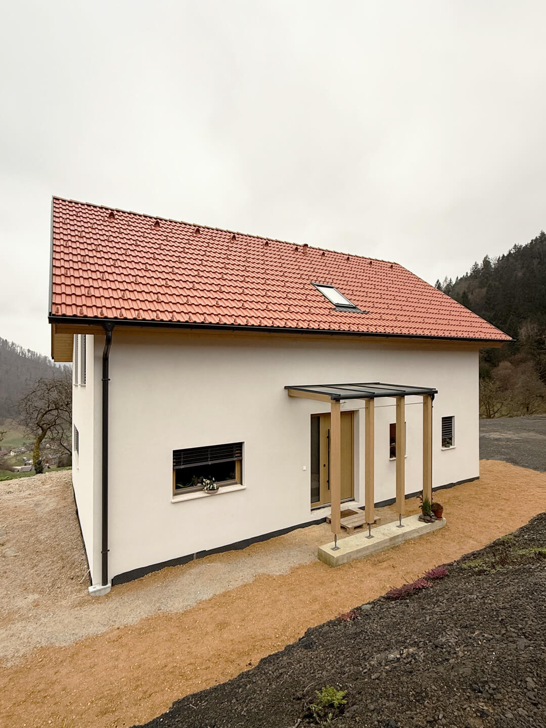 Ko so bili določeni gabariti in tloris, so se arhitekturni detajli obravnavali kot sestavni del hiše in ne kot nekaj, kar se dodaja kasneje. Želje družine so bile vključene že v fazi načrtovanja, zato so bili vsi detajli izvedeni znotraj sistema Jelovice in arhitekturno usklajeni.
