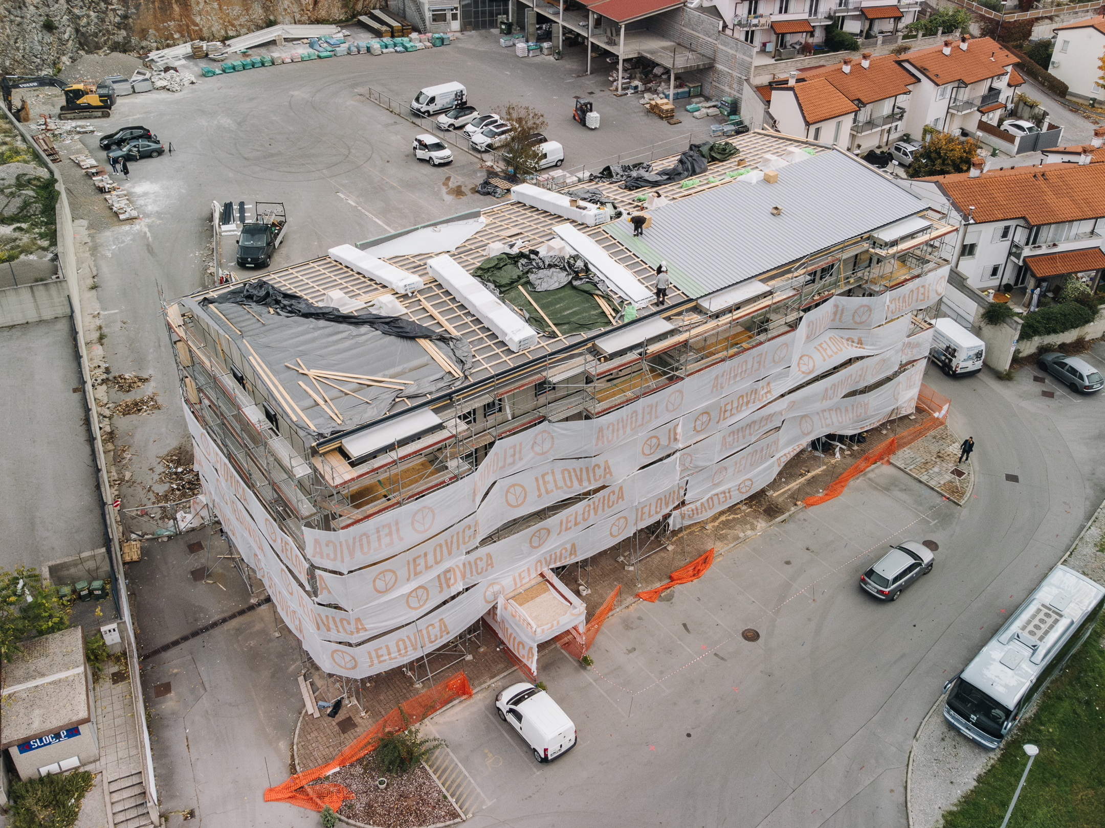 V Sežani Jelovica uspešno zaključuje enega najbolj inovativnih gradbenih projektov v Sloveniji: nadgradnjo obstoječe masivne stavbe z okvirno-panelno leseno konstrukcijo, ki je omogočila izvedbo treh novih etaž z minimalnim posegom v obstoječo temeljno konstrukcijo. Gre za prvi tak primer večstanovanjske gradnje v Sloveniji, ki prinaša jasen signal trgu – lesena gradnja je prihodnost urbanega razvoja.